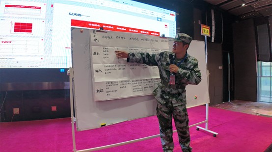 接下來,王克導師結合分析知名企業成功案例,提綱挈領,拋磚引玉,對學員們的認知、心智以開悟啟迪,各個連隊針對研討營提出的“形勢研判”“價值定位”“業務鋪排”“模式設計”“系統行動”“資能配置”“企業管控”等七大課題通過研討集思廣益,用心作業,然后形成報告,進行展示,以豐富多彩的形式展開競賽。每位學員在研討中不再墨守成規、因循守舊,而是放開思路、創新思維,不斷突破自我認知邊界,用全新的視角去看待問題,解決問題,同時與隊友密切配合、相互補充,最終依靠團隊的力量,攻克一個接一個看似艱巨的課題。每一次研討都是一次思想碰撞,每一次碰撞都伴隨著一次思維重構。尤其在文化活動——“鷹王重生”環節,面對看似不可能完成的任務,大家一次次克服畏難情緒,經受住信念、毅力和體能的多重考驗,即使累得滿頭大汗、胳膊疼麻,也咬牙堅持,自我鼓勁,不言放棄,可謂經歷了一場身心的洗禮與覺醒。面臨生死抉擇,選擇生,就必須拋舊納新,自我蛻變,經歷疼痛;企業重構建歸根結底始于人的重構建,始于個人的自我打破和蛻變;蛻變是艱難而痛苦的,但只有經過蛻變的陣痛,個人、團隊乃至企業才能獲得重生。