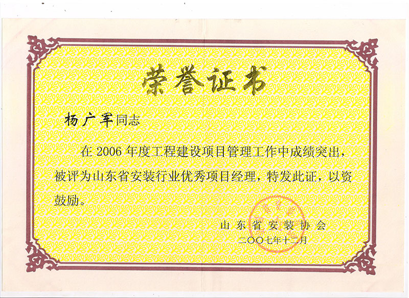 Certificate of honor
